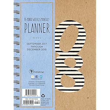 2018 Striped Kraft Daily Weekly Monthly Planner 16 Month Agenda: Sept. 2017 - Dec. 2018 Details